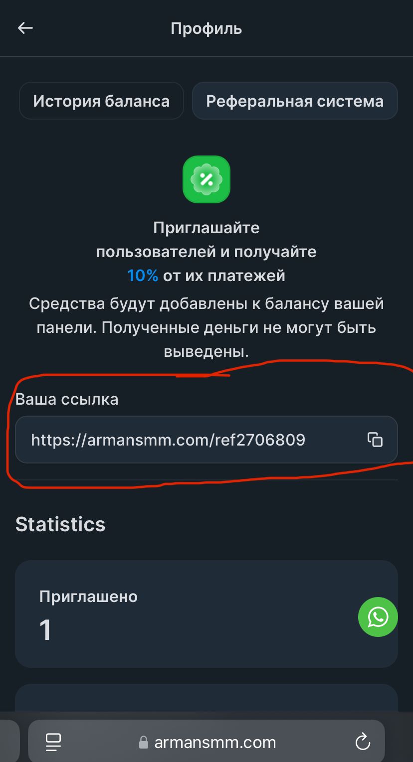 Меню - Профиль - Реферальная система
